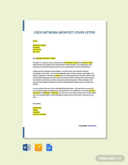 Cisco Cover Letter. Looking for a job and need a CV? with the Cisco Network Engineer CV Examples and Examples from myPerfectCV you will write a CV that suits you in minutes. Cover letter examples in different styles, for multiple industries.
