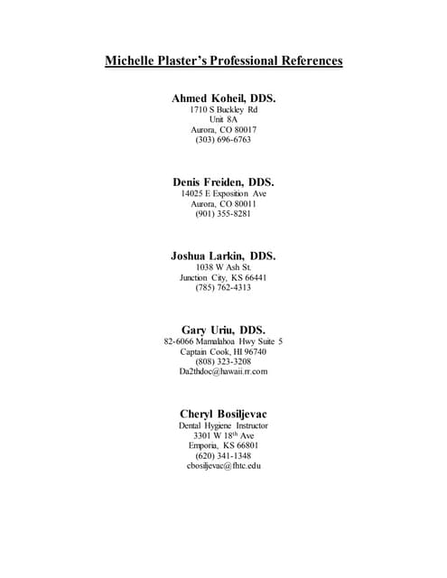 Clean up your outdated cover letter with our free, downloadable dental hygienist cover letter sample. In the same way that you might reference resume samples, the following Dental Hygienist cover letter example will help you to write a cover letter that best highlights your experience and qualifications. Dental hygienist reference letters are meant for certain individuals who clean patients' teeth, take jaw x-rays and handle other procedures that do not require the attention of a dentist.