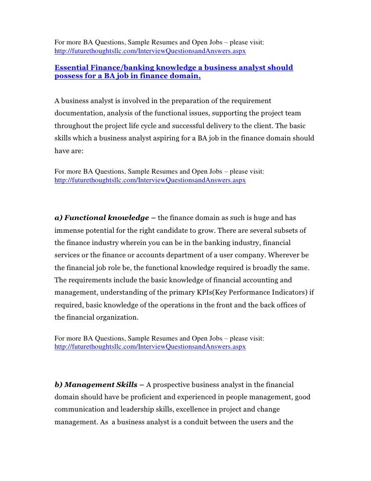 Business Analyst resume for Financial and Banking domain ...